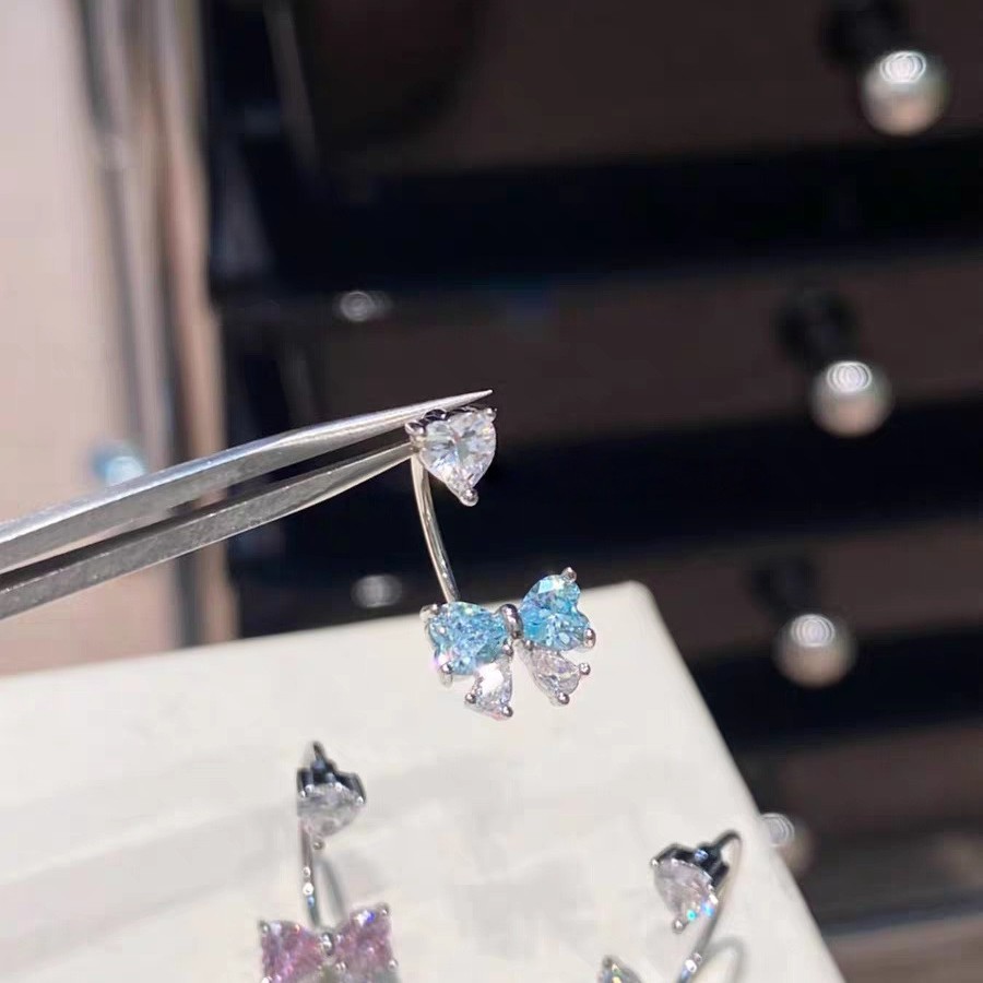 Pink Bow Heart Horseshoe Ring Sweet and Cute Earrings U-Shaped Sleeping Ear Earrings for Women