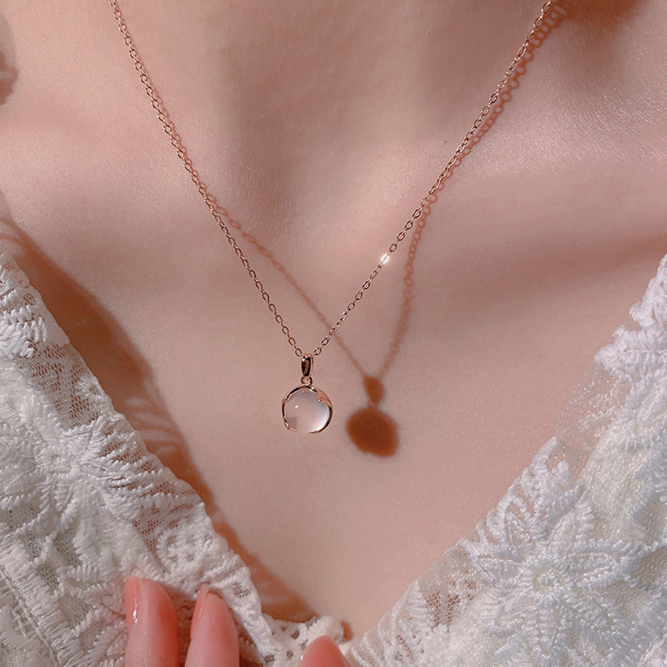White Chalcedony Necklace Women's Pink Crystal Pendant Women's Light Luxury Niche High-end Clavicle Chain Birthday Gift 2023 New Style
