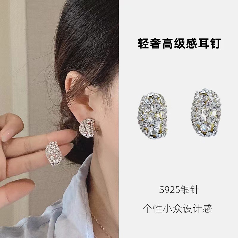 925 Silver Needle Full Diamond Cut Out Purple Zircon Earrings New Fashion Unique Elegant Niche Design High-End Women