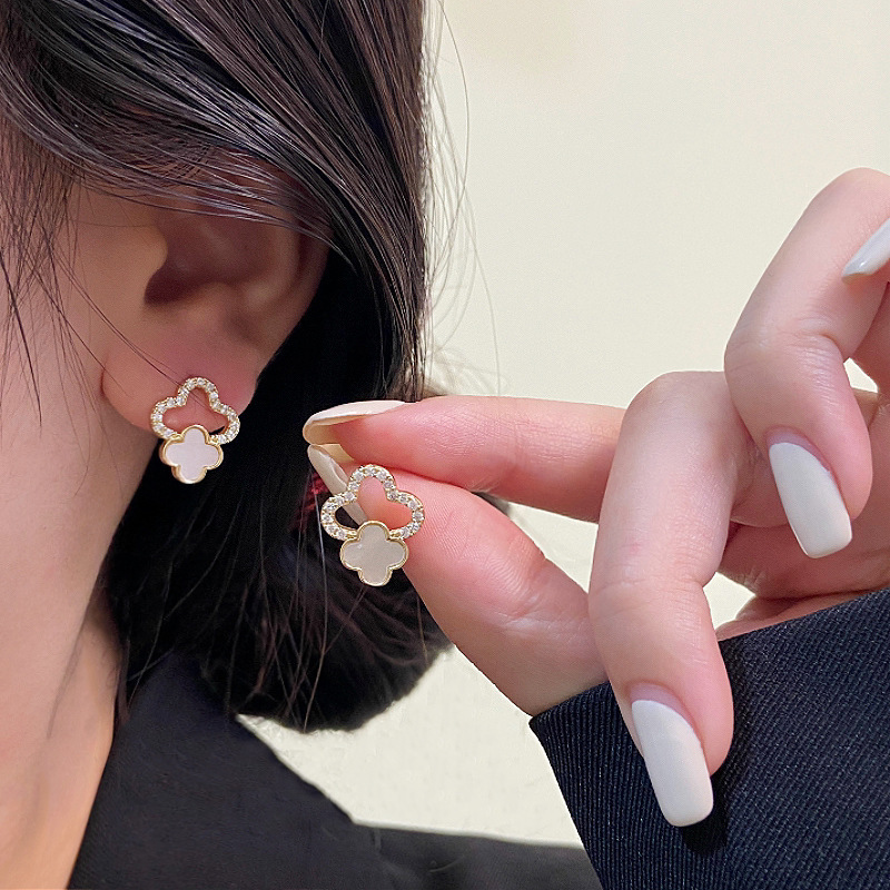 2025 New Four-Leaf Clover Earrings, Exquisite Light Luxury Diamond Earrings, Fashionable, Elegant and Versatile Earrings Wholesale