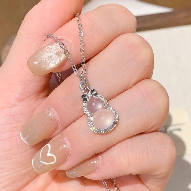 Ice White Chalcedony Gourd Necklace Women's New Tie Pendant Necklace Light Luxury Niche Clavicle Chain Women's Woolen Chain