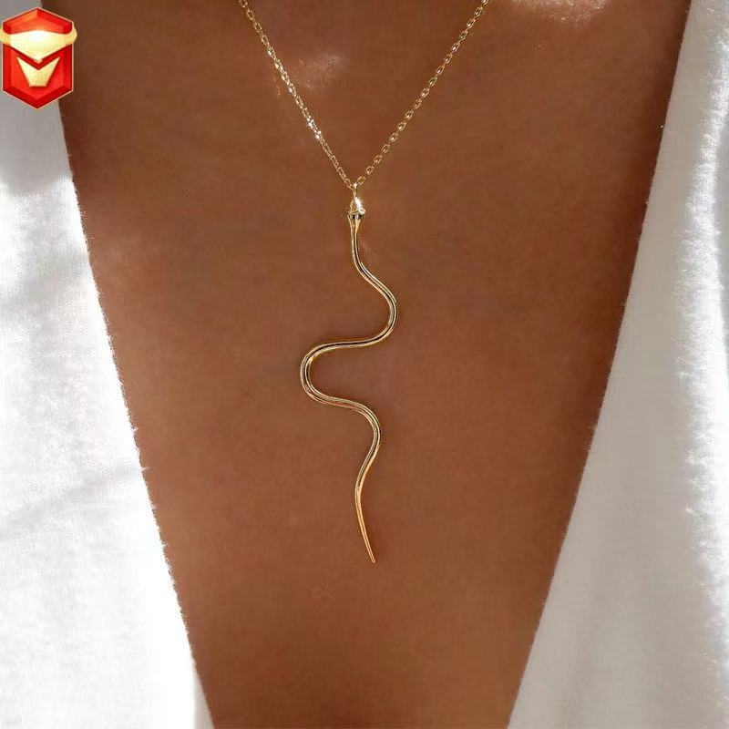 Cross-Border European and American Fashion Personality Temperament Simple Versatile Rose Gold Snake-Shaped Pendant Necklace European and American Wholesale Jewelry