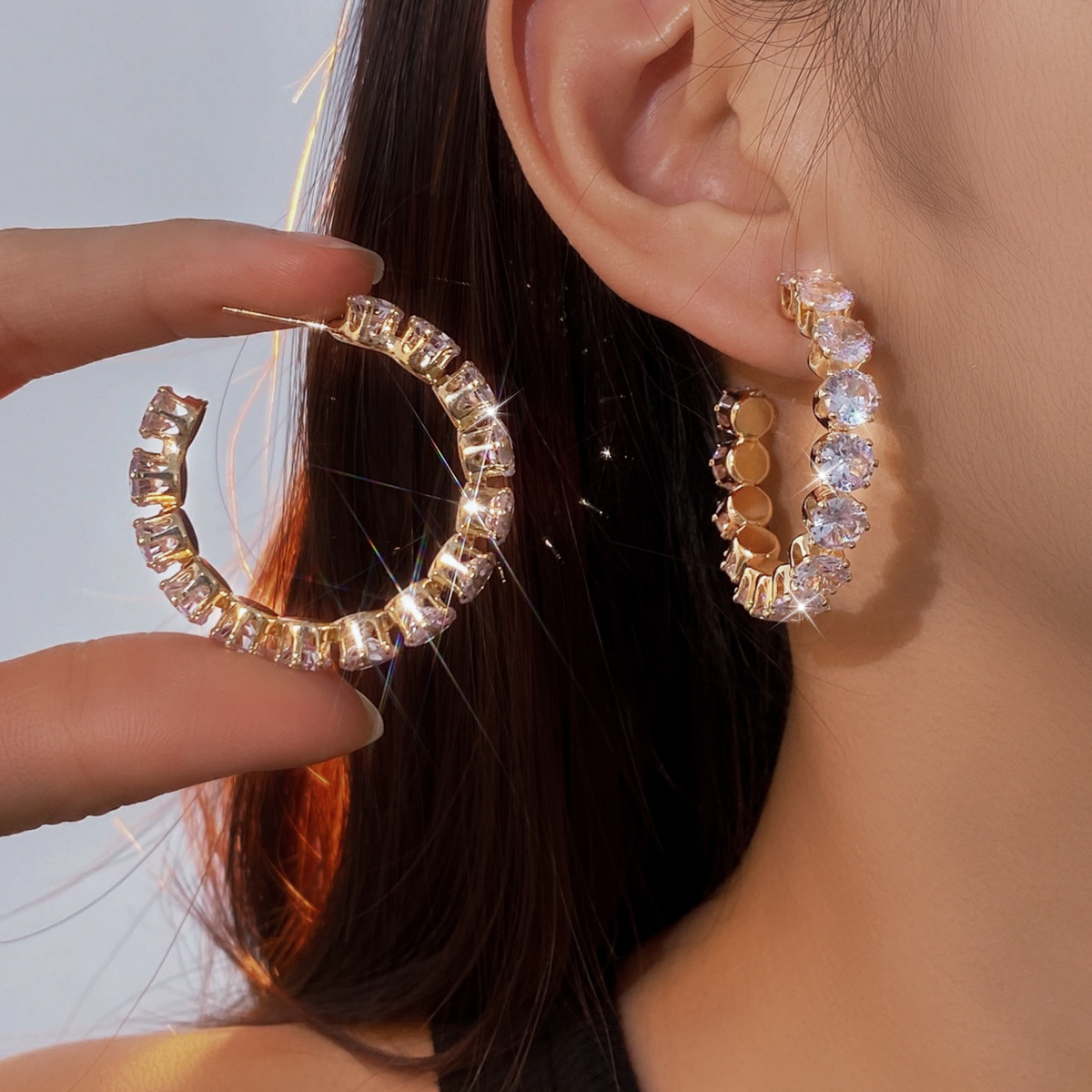 European and American Cross-Border Silver Needle Diamond Round Earrings for Women, Fashionable Exaggerated Temperament Earrings, Light Luxury and High-End Earrings Wholesale