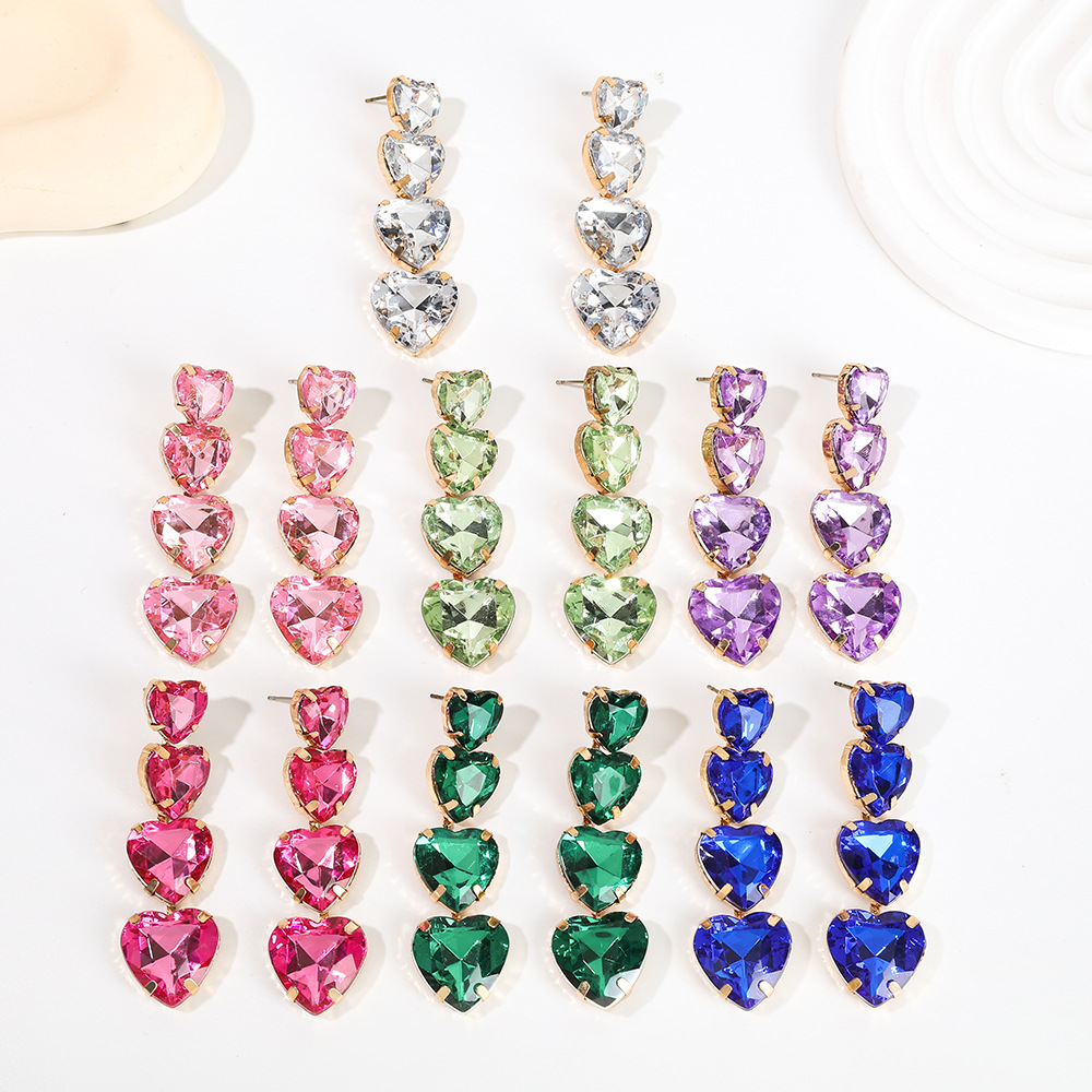 European and American Cross-Border Hot-Selling Colorful Geometric Earrings Heart Diamond Fashion Commuter Elegant Long Earrings Earrings for Women