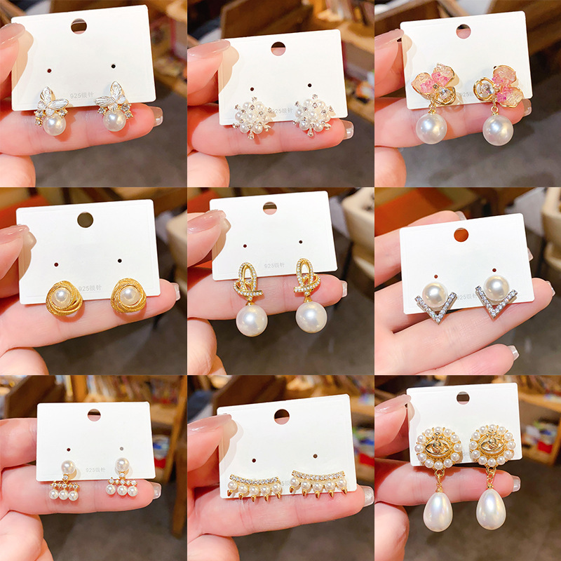 French-Style Light Luxury High-End Trendy Micro-Inlaid Pearl Earrings Exquisite Earrings for Women Fashion Versatile Luxurious Elegant