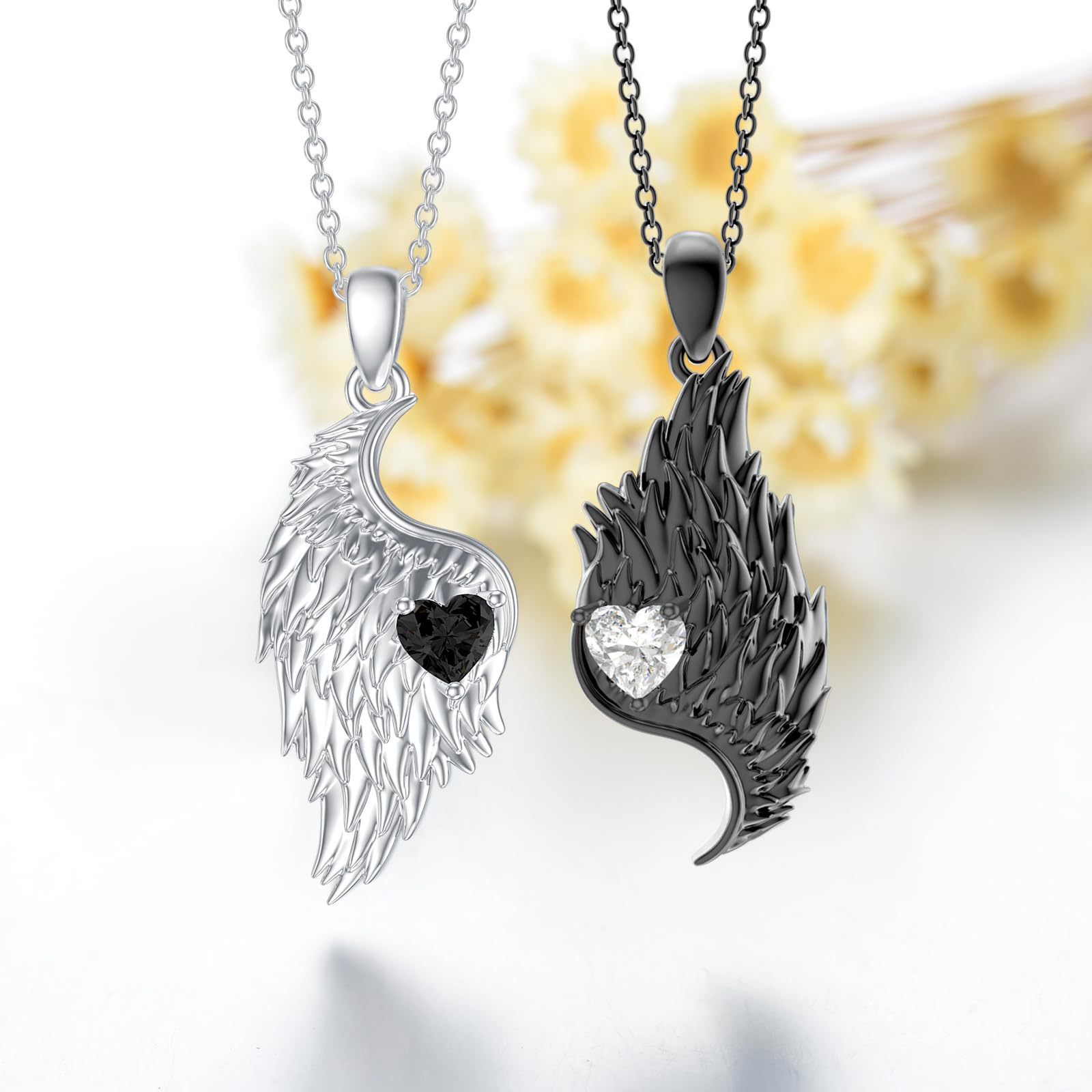 Angel Wings Black and White Necklace Devil Wings Diamond Collarbone Spliced Love Pendant Couple Holiday Gift Necklace