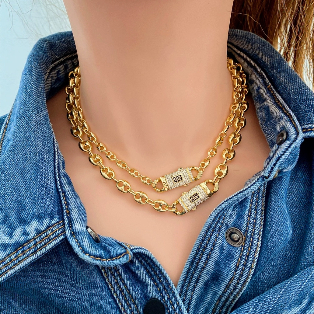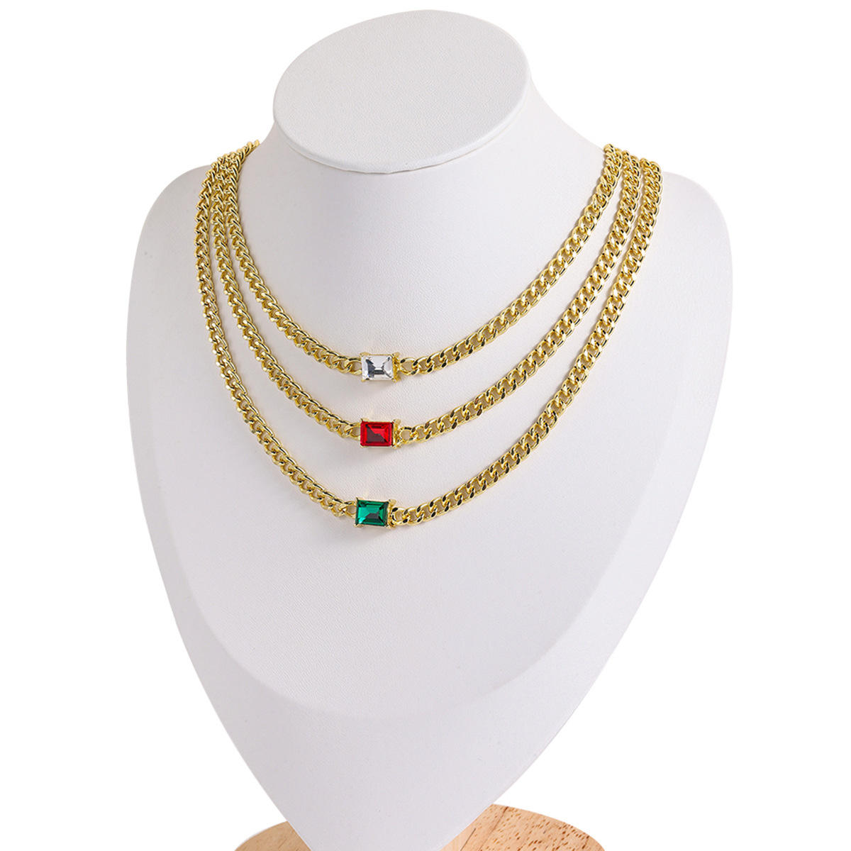 European and American New Fashion Simple Necklace Niche Design Square Three-Dimensional Emerald White and Red Crystal Necklace Clavicle Chain