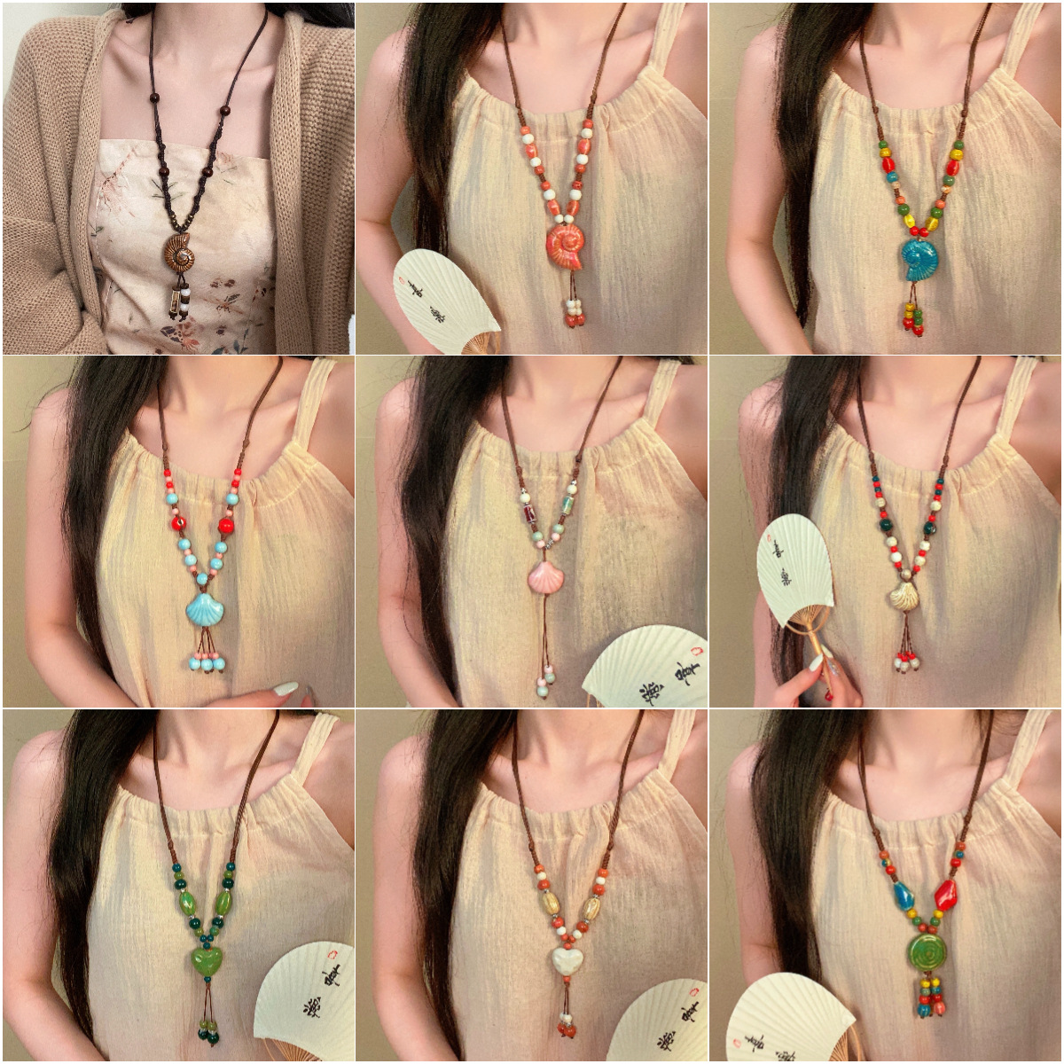 New Chinese-Style Ceramic Starfish Shell Necklace for Women, Ancient Style Design, Long Braided Clavicle Chain, Retro Versatile Accessory Trend
