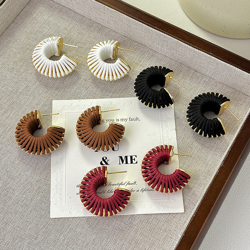 European and American artificial leather C- shaped striped earrings cross-border ins retro fashion earrings niche high-end earrings wholesale