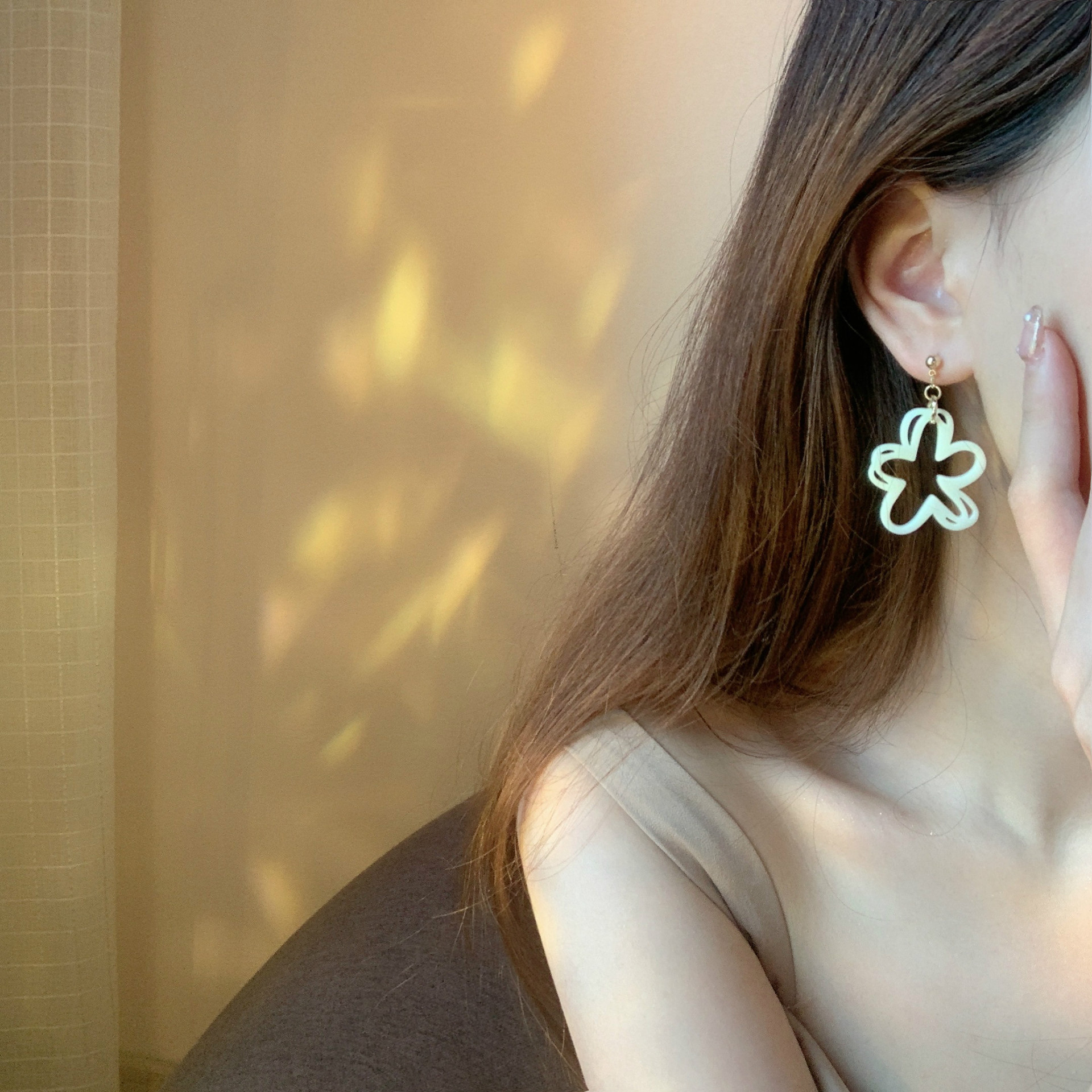 Swaying White ~ @ S925 silver needle slimming temperament hollow acrylic flower Japanese feeling retro girl earrings ear clip