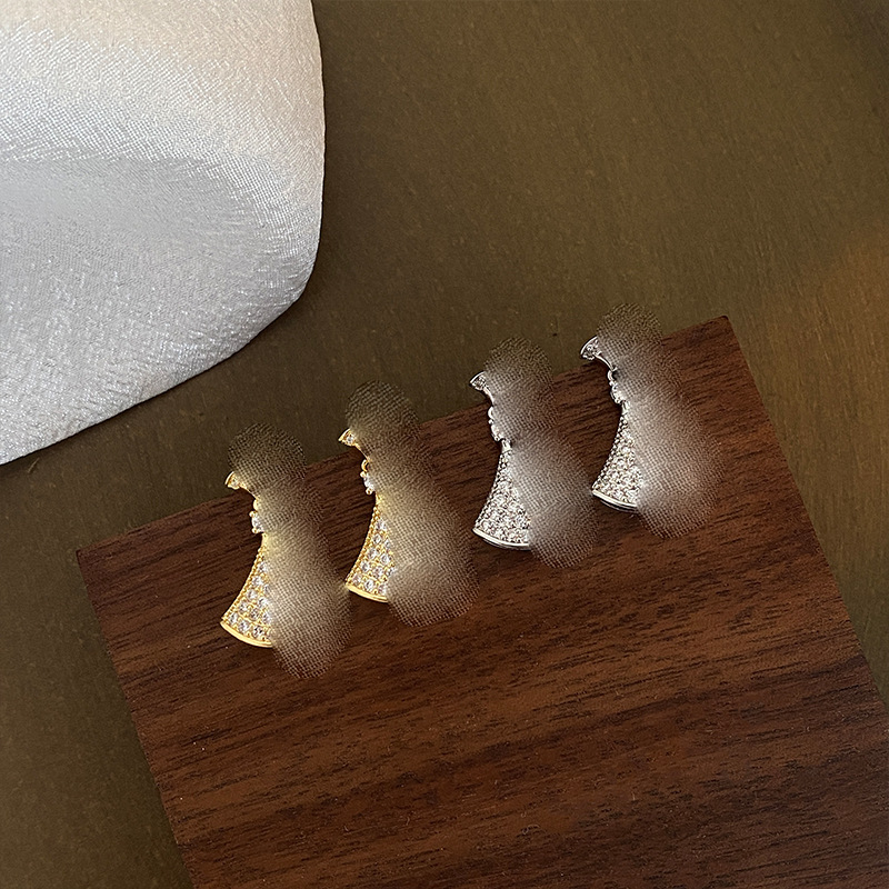 New fashion high-end sense fan-shaped micro-inlaid zircon earrings trend luxury exquisite atmosphere small niche all-match gas