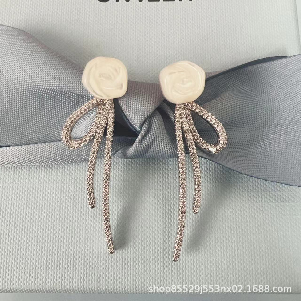 Silver Zircon Light Luxury High-end Sense Wheat Earrings Flower Water Drop Tassel Fashion Earrings Retro Bow Earrings