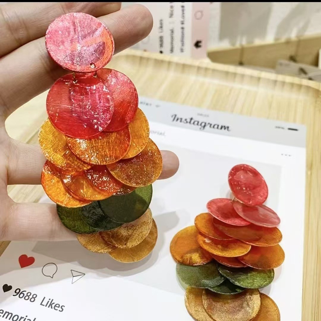 Vacation Style Exaggerated Atmosphere Natural Shell Round Earrings Grape String Tassel Fish Scale Silver Needle Long Tassel Earrings