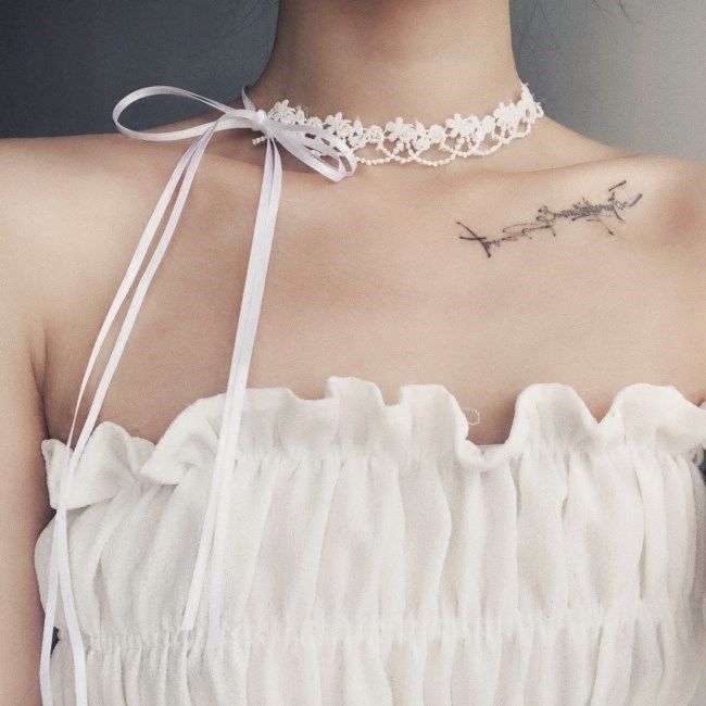 Internet Celebrity White Lace Hollow Necklace Collarbone choker Hand-made Japanese and Korean Style Lace-up Strap Necklace