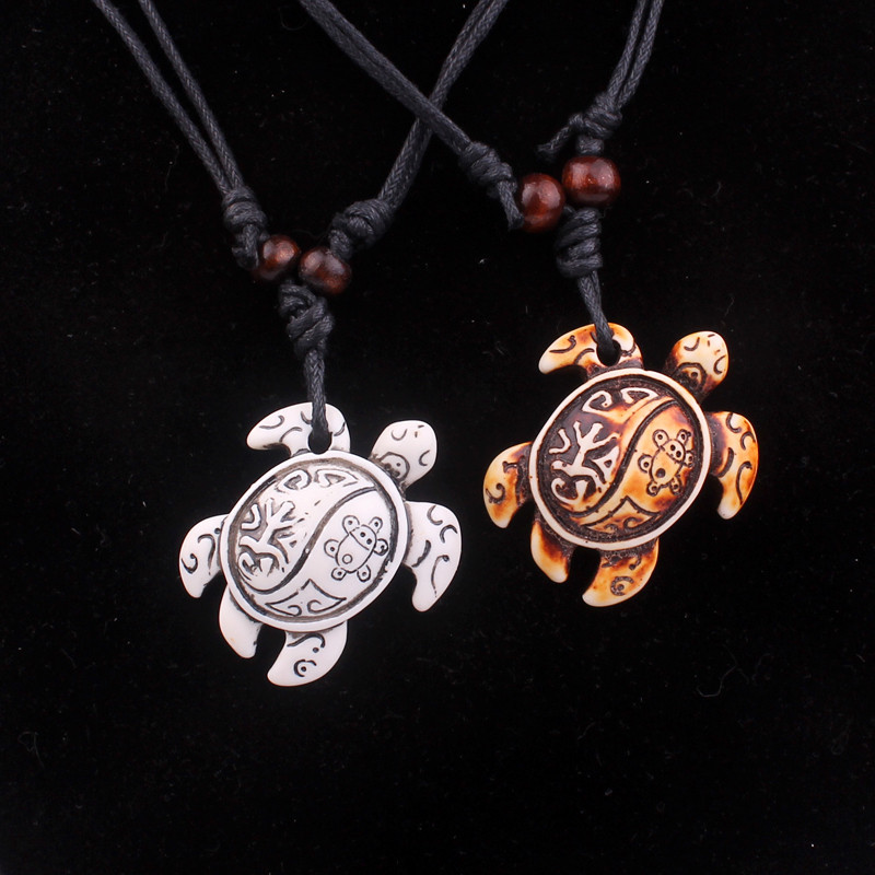 Two-color optional turtle necklace imitation yak bone carving pendant foreign trade hot European and American wind imitation bone turtle pendant wholesale