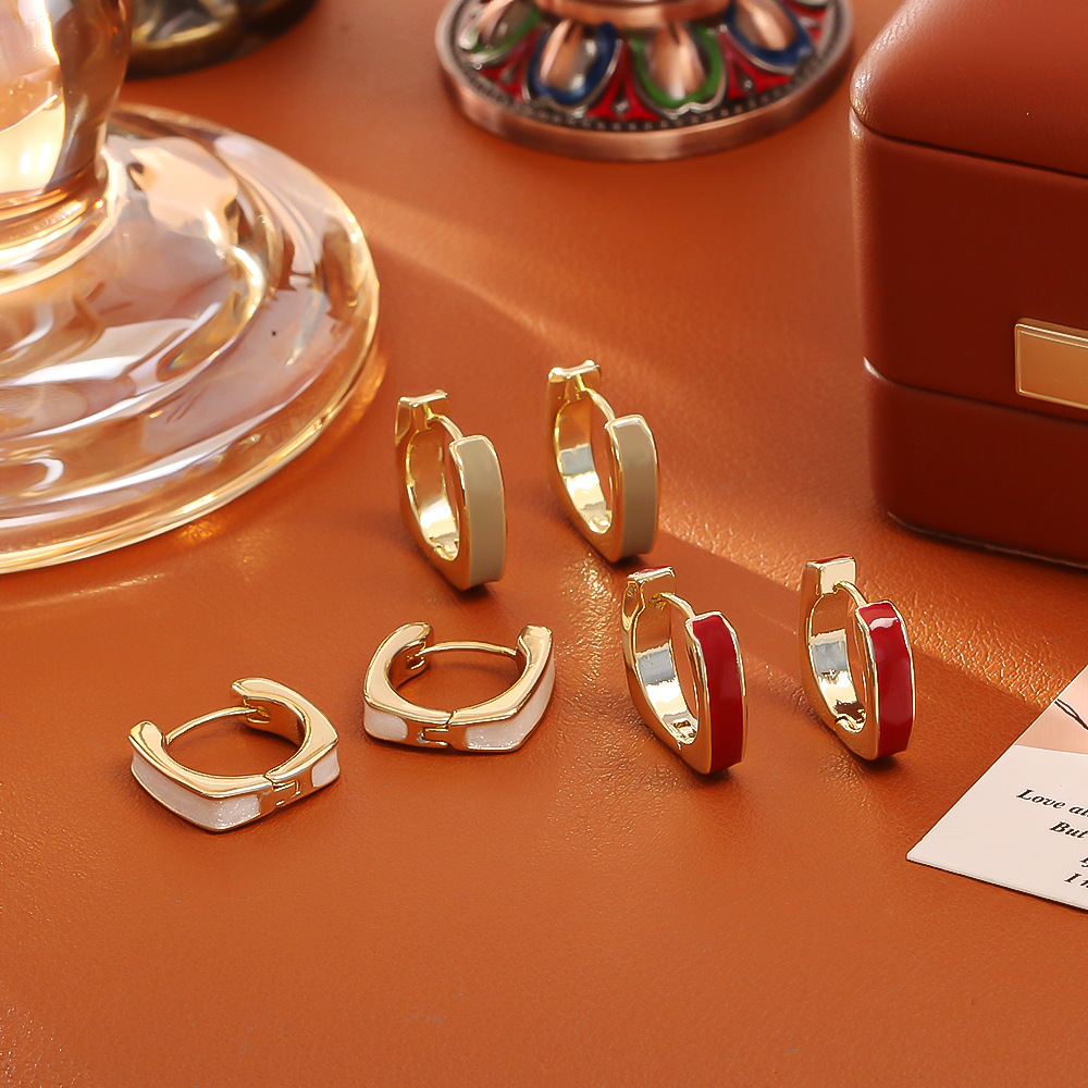 Classic Hong Kong Style Square Oil Drop Earrings, Double-Sided Wearable, High-End, Fashionable, Simple and Elegant Earrings for Women, Daily Earrings