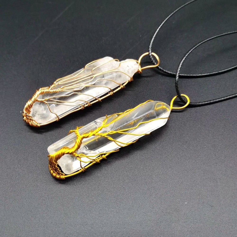 Amazon Explosions Handmade Wound Natural White Crystal Transuminant Crystal Column Tree of Life Necklace Pendant N805