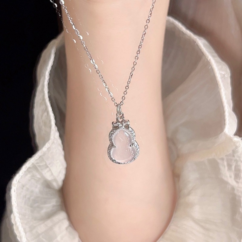Sterling Silver Gourd Necklace Bracelet for Women White Mother-Of-Pearl Red Agate 18K Rose Gold Unicorn Fortune Pendant Clavicle Chain Hot Sale