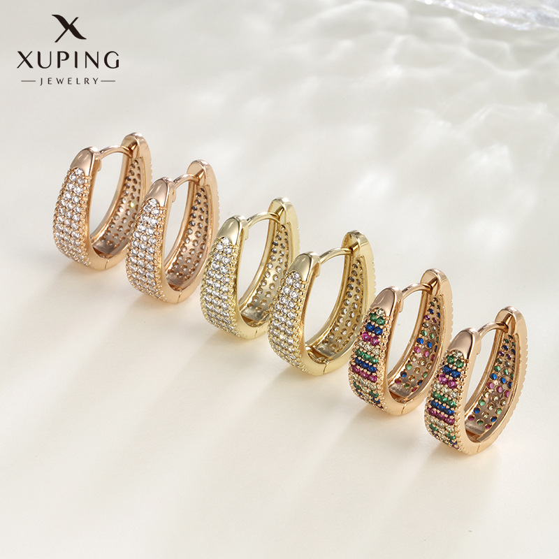 Xuping European and American Cross-Border Niche Design Geometric Oval Micro-Inlaid Zircon Earrings Fashion Earrings for Women