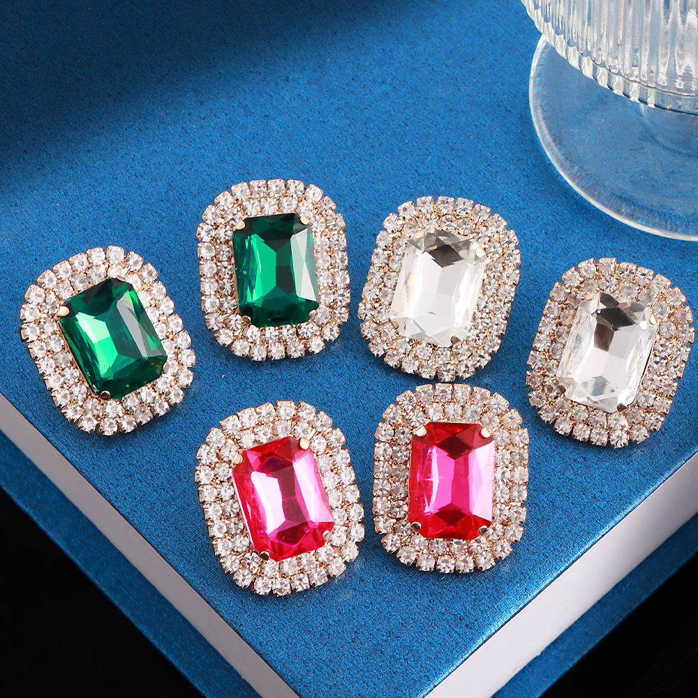 Super flash claw chain square diamond glass diamond geometric earrings European and American high luxury catwalk earrings wholesale earrings