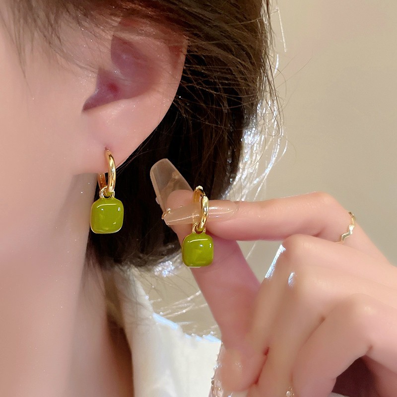 Avocado Green Square ear buckle elegant simple elegant green lovely earrings white square earrings