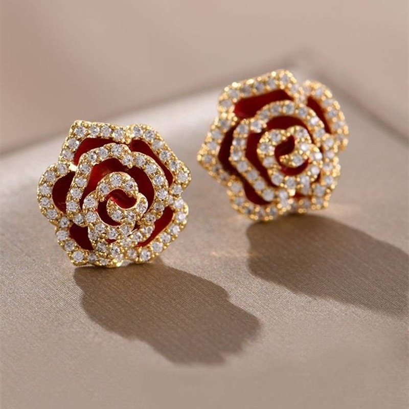 Autumn and Winter flocking wine red rose Silver Needle New earrings 2023 super popular ins niche gentle earrings