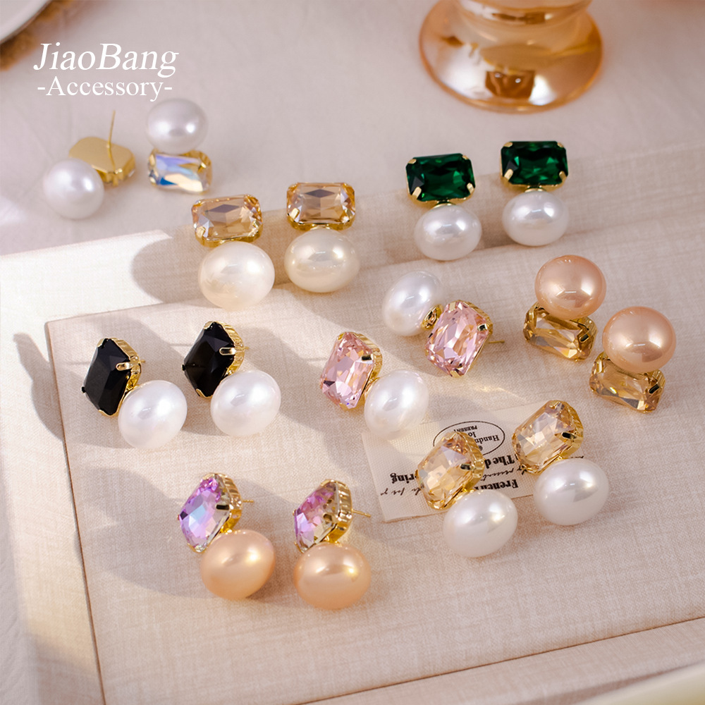 Ins French Retro Personality Inlaid White Green Zircon Imitation Pearl Pendant Earrings 2024 New