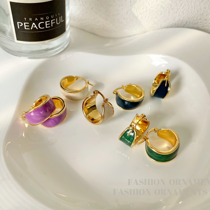 Copper Plated Real Gold Japanese Korean Distinctive Oil Drop Earrings ins Style Retro Ear Ring Elegant Simple Wide Face Earrings for Women T83