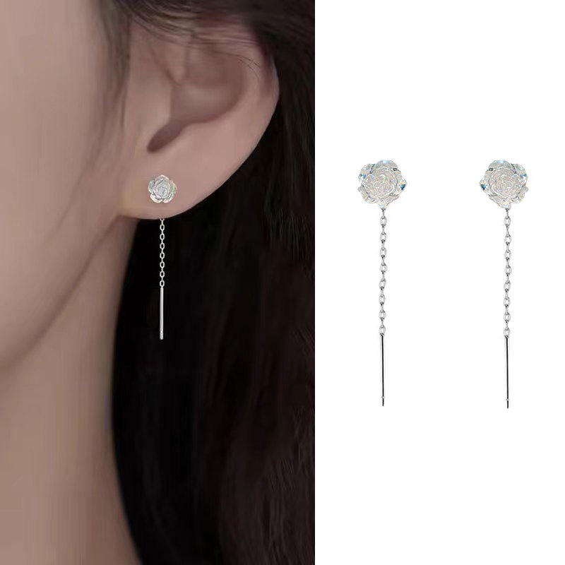 Beautiful Explosive Earrings 925 Silver Needle White Rose Flower All-match Earrings Women's Simple Fashion Sweet Earrings