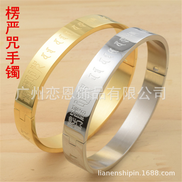 Titanium Bracelet Great Sadness Curse for Men and Women Couple Shurangama Curse Heart Curse Bracelet Fashion Wide Bracelet Scripture Bracelet
