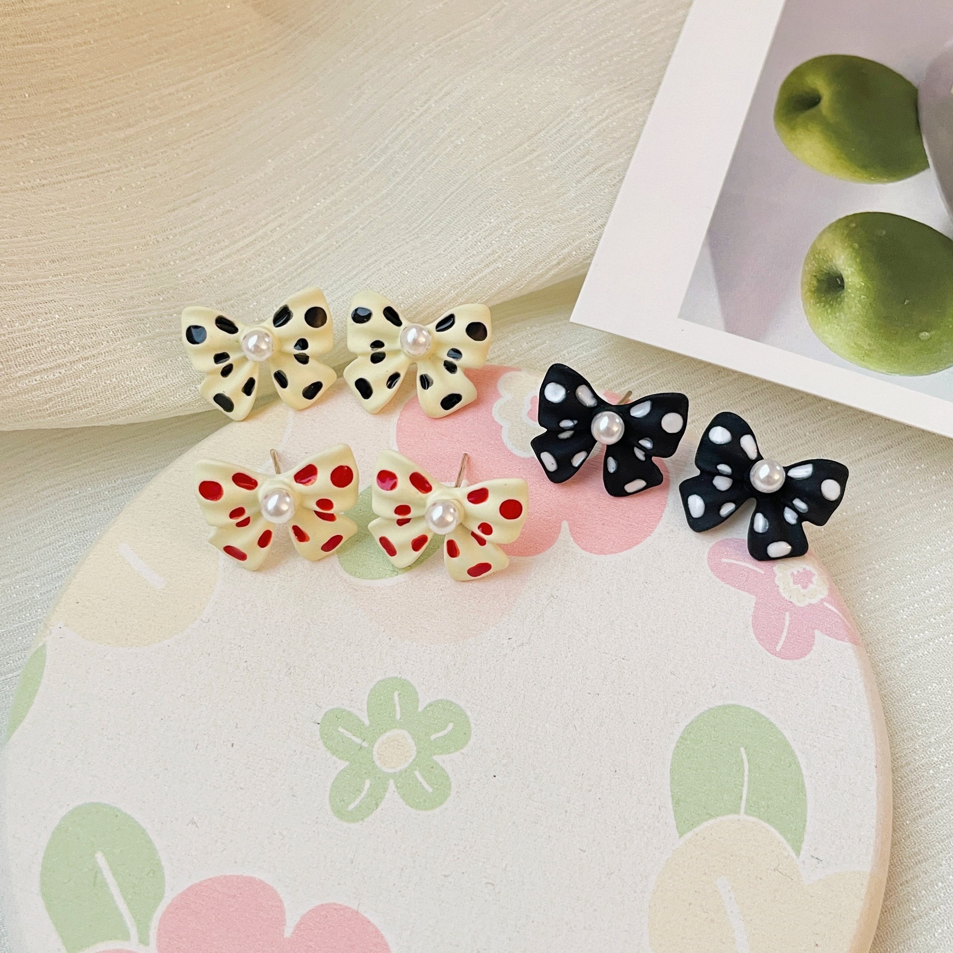 S925 silver needle sweet fresh gentle temperament polka dot bow stud earrings female niche design earrings earrings