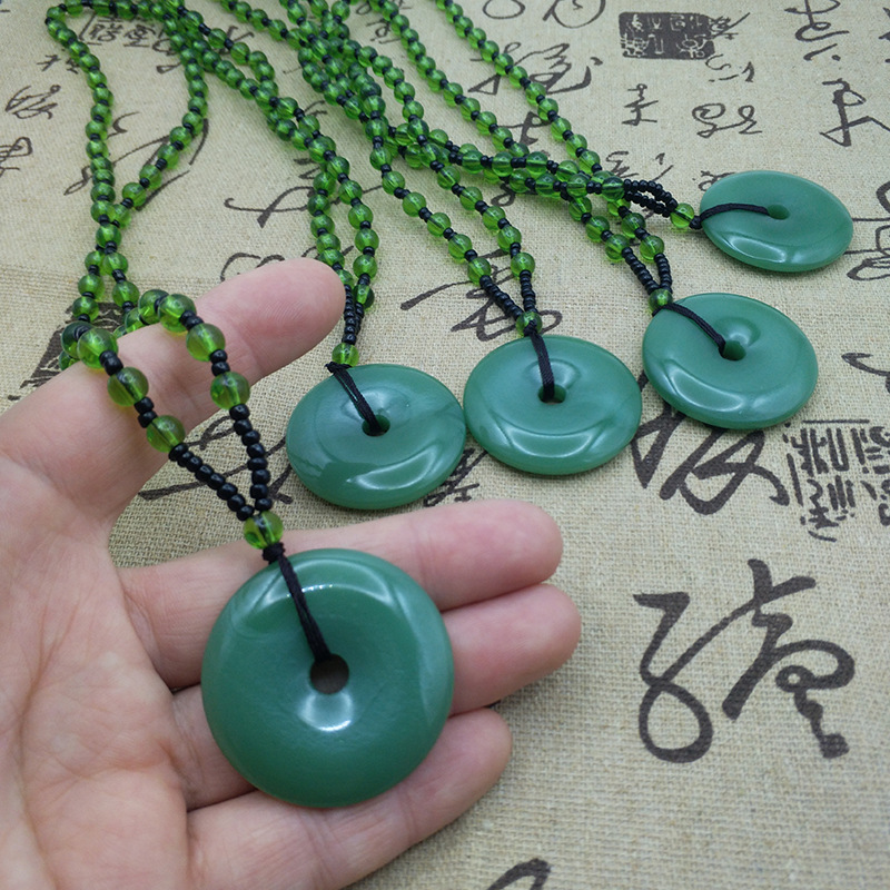 Anti-Yuping Buckle Pendant Ethnic Style dark green Chalcedony Ping An Jade Pendant Long Wool Chain Live Drainage Necklace