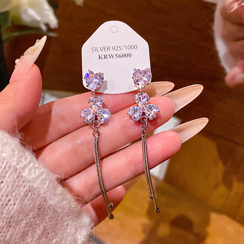 Light Luxury Niche High-End Exquisite Zircon Long Tassel Earrings for Female Celebrities, Fashionable and Versatile Earrings