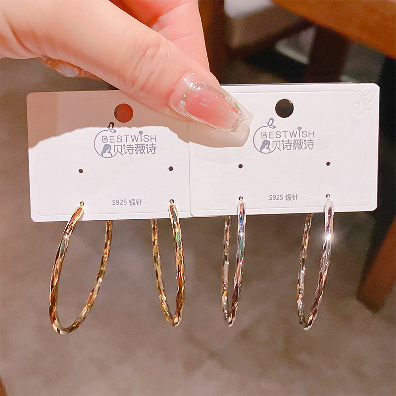2025 New Geometric Multi-Faceted Smooth Hoop Earrings Silver Needle Smooth Versatile Ins Style Trendy Earrings Jewelry