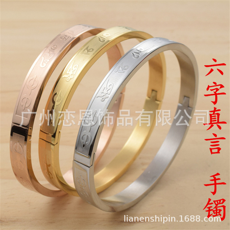 Six words mantra Daming mantra titanium steel bracelet men and women couple bracelet rose gold girl bracelet scripture bracelet