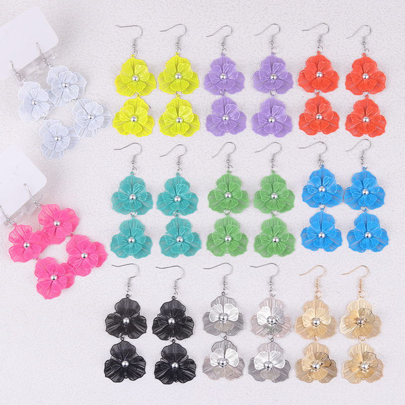 New Super Fairy Temperament Holiday Style Long Flower Metal Earrings Retro Colorful Petal Earrings Jewelry for Women