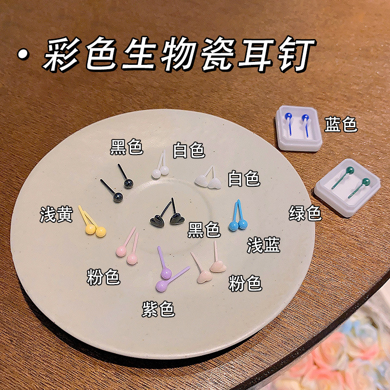 Bio-Porcelain Ear Piercing Earrings, Geometric Heart Ear Sticks, Macaron Colorfuled Ceramic Earrings, No Need to Remove Earrings for Sleeping