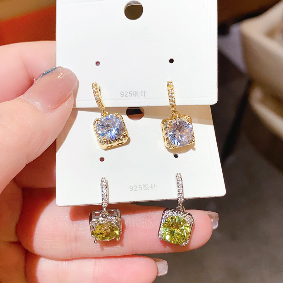 18K Real Gold Electroplated Silver Needle Accessible Luxury Zircon Square Earrings Fashionable Simple Niche Elegant High-End Earrings for Women