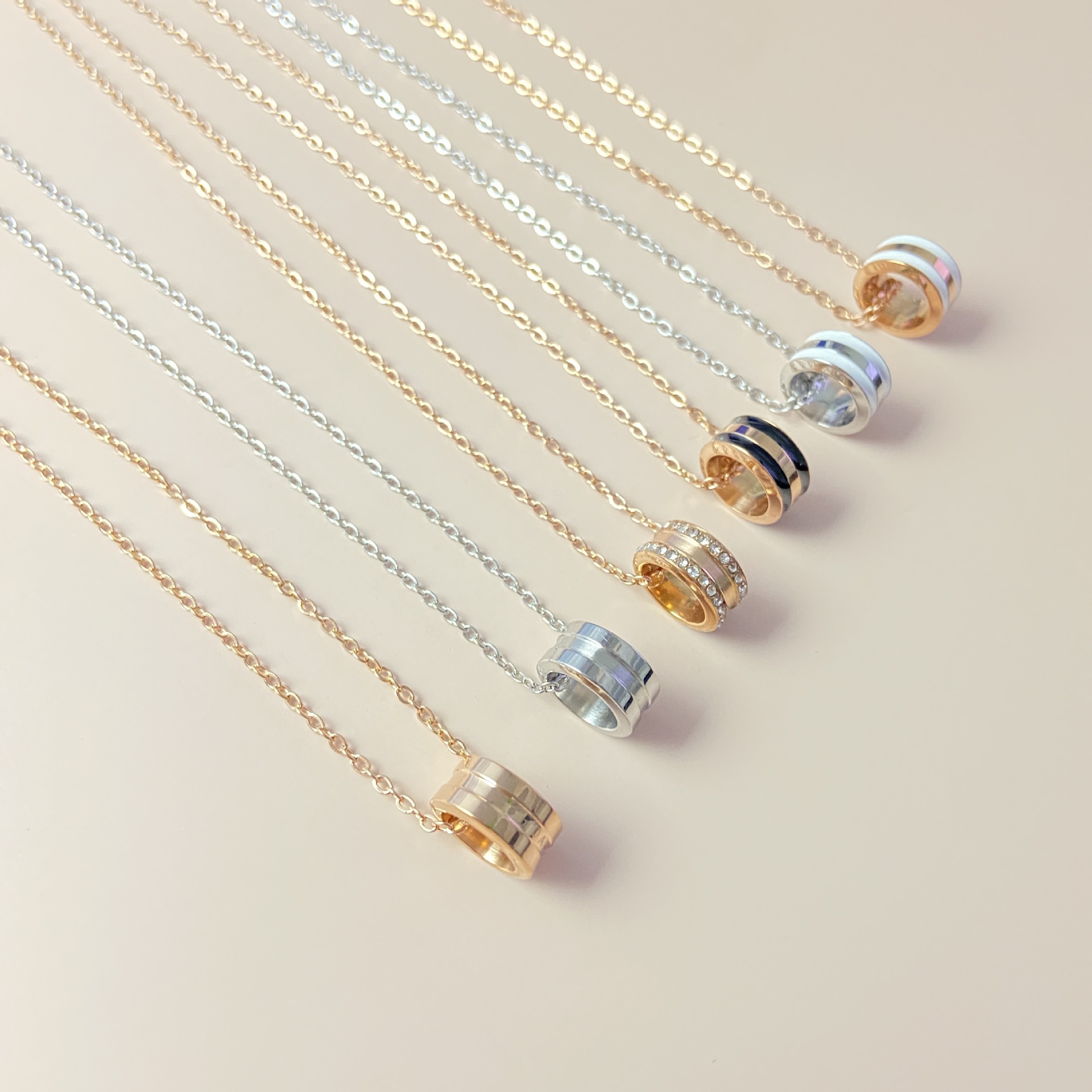 Dw Series Necklace with Diamonds, Single-Slot Titanium Steel Rose Gold, Small Waist Design, Simple, Fashionable, Exquisite Cylindrical Clavicle Chain, Short Style