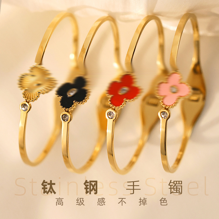 Cross-border women's wholesale electroplating women's high-end sense women's non-fading jewelry titanium steel bracelet gold four-leaf clover bracelet