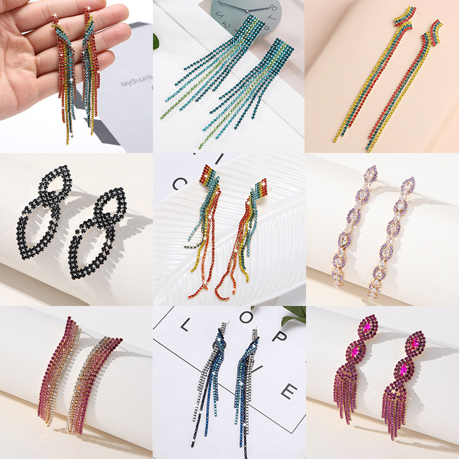 Silver Needle Diamond Geometry Irregular Earrings Women's European and American Exaggerated Color Diamond Claw Chain Earrings Earrings Personality Temperament Earrings