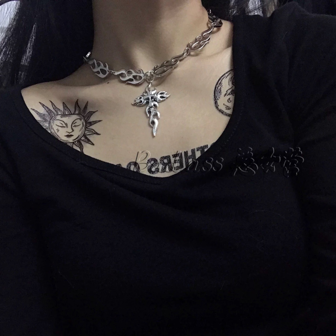 European and American exaggerated shiny multi-row rhinestone long tassel clavicle chain female Net Red personality neckband black vintage necklace