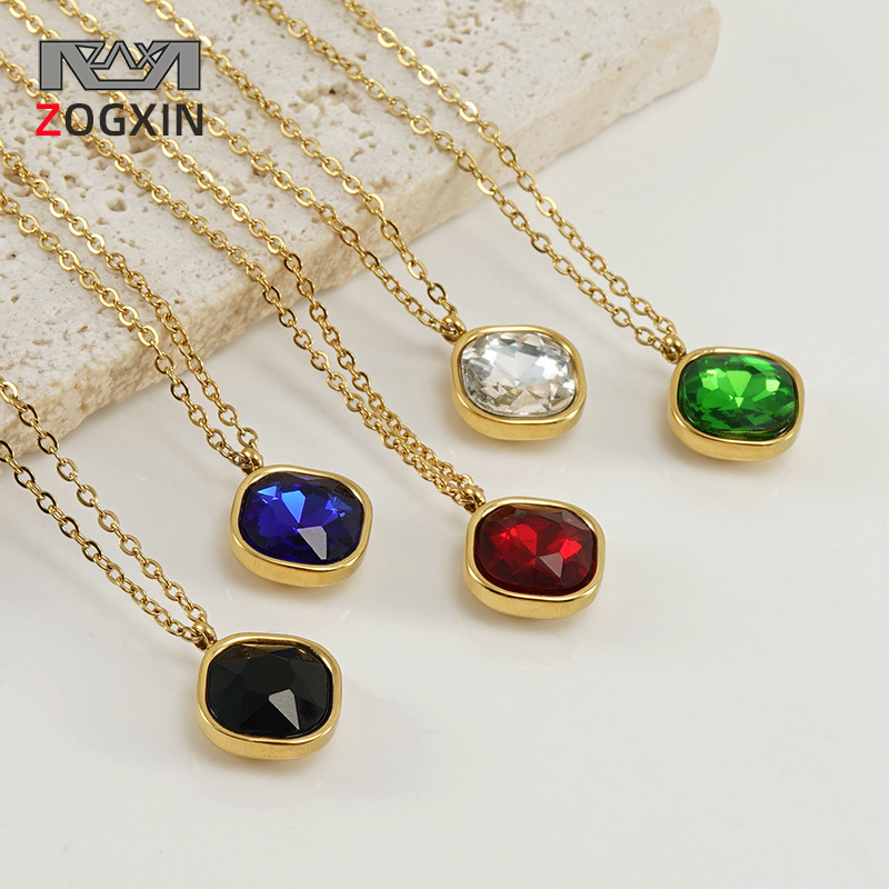 Custom Amazon Fashion Temperament Geometric Titanium Steel Necklace Female European and American 18K Stainless Steel Irregular Zircon Pendant