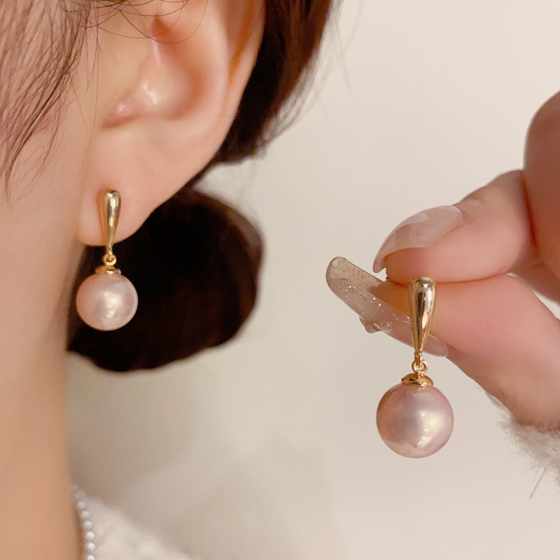 Niche All-match Fashion Elegant One-word Pearl Earrings S925 Silver Needle Exquisite Simple Light Luxury High-end Earrings