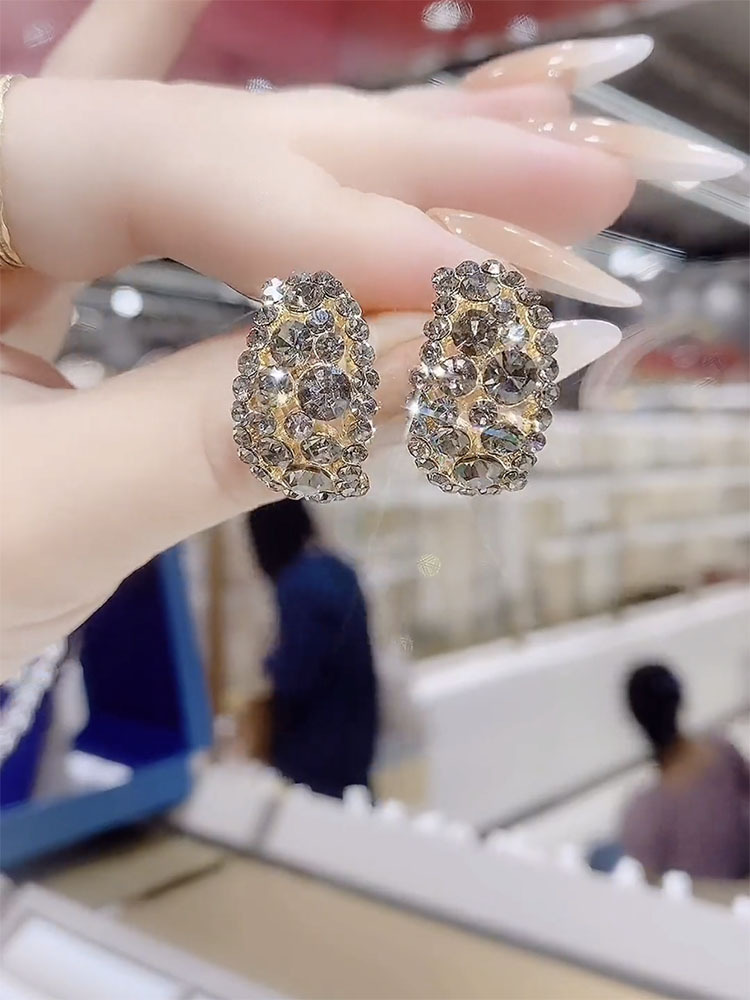 2024 Full Diamond High-End Elegant Earrings for Women High-End Elegant Popular Earrings New Silver Needle Versatile Earrings Wholesale
