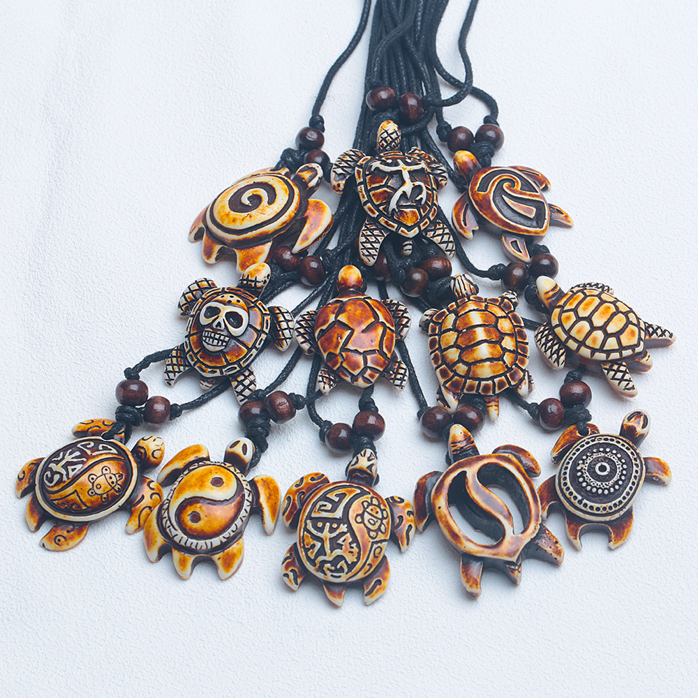 Men's Retro Retractable Resin Turtle Pendant Necklace Casual Rope Woven Couple Jewelry Fashion Woolen Chain