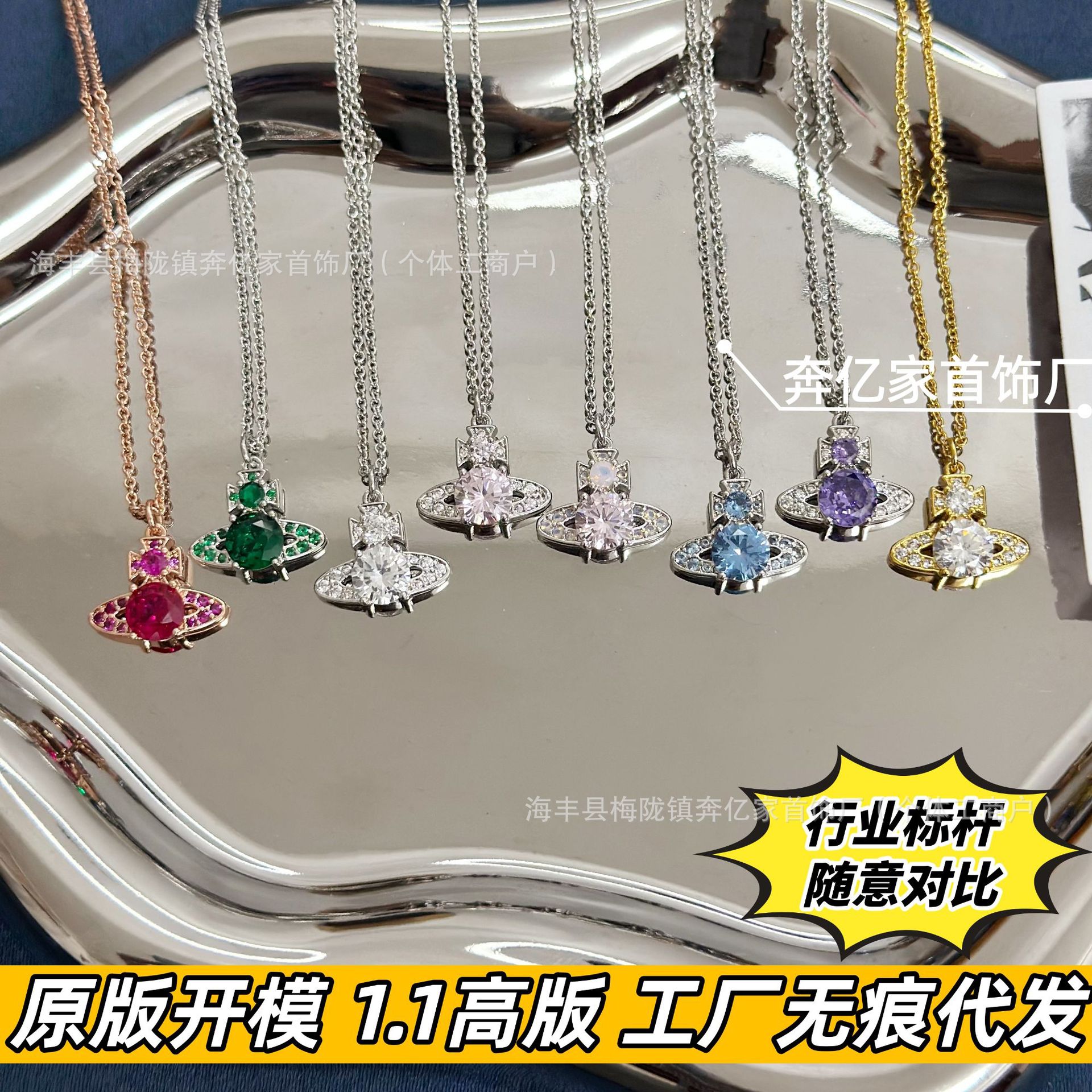 Empress Dowager Xiaoman Diamond Saturn Necklace for Women, Exquisite Mini Light Pink Diamond and Blue Diamond, Light Luxury Niche High-End Clavicle Chain