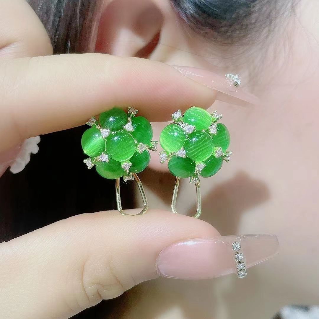 Korean Style New Trendy High-End Elegant Cat's Eye Flower Earrings Fashionable and Versatile Internet Celebrity Hot Style Ear Clip Earrings for Women
