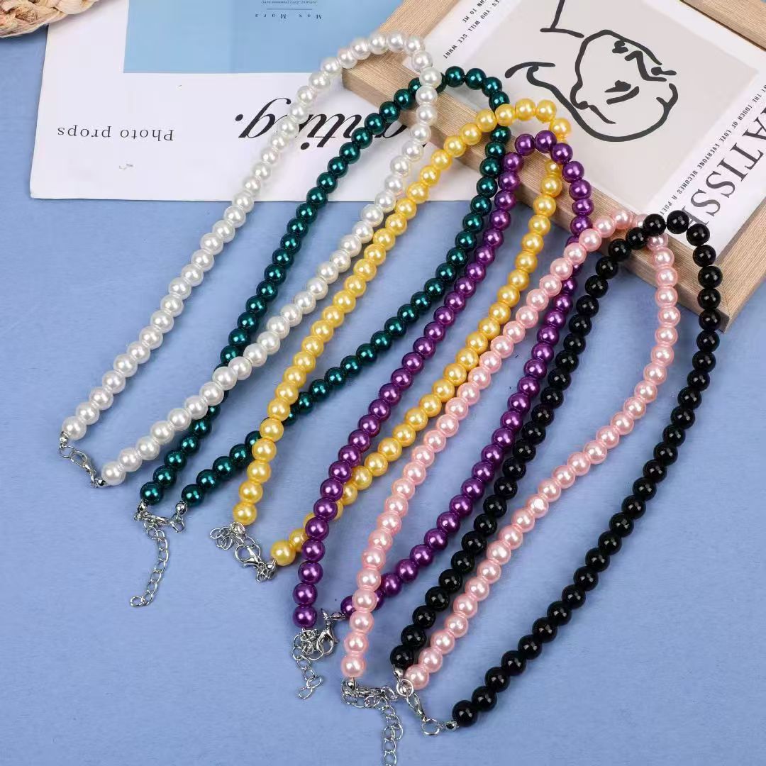 European and American color imitation crystal necklace women's temperament metal chain clavicle chain simple long tassel necklace wholesale