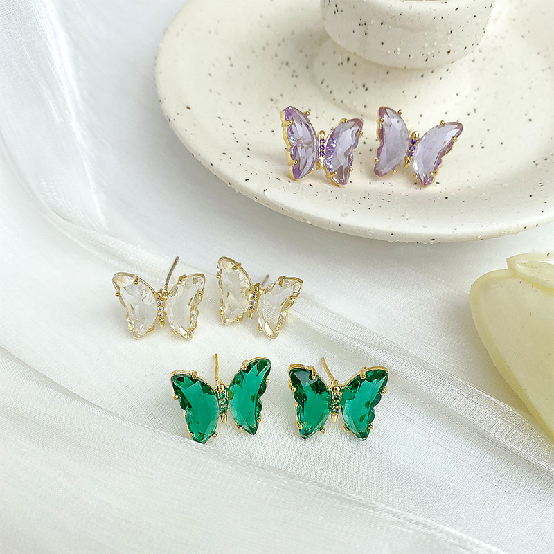 Korean version of the explosion earrings Summer Super fairy transparent butterfly earrings temperament simple crystal earrings stall supply wholesale